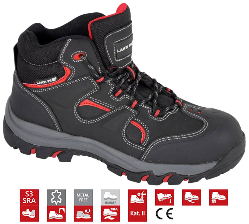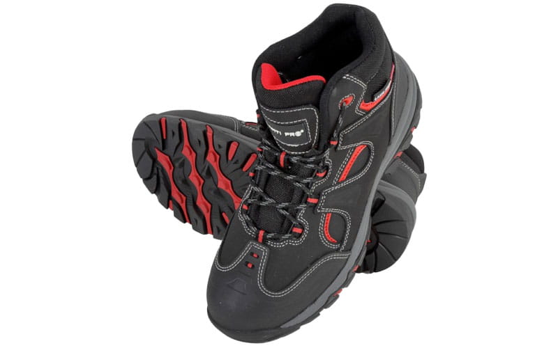 - Trzewiki posiadają podnosek kompozytowy, polimerową wkładkę antyprzebiciową, właściwości antyelektrostatyczne, absorpcję energii w części piętowej, zabudowaną piętę oraz ograniczoną przepuszczalność i absorpcję wody.