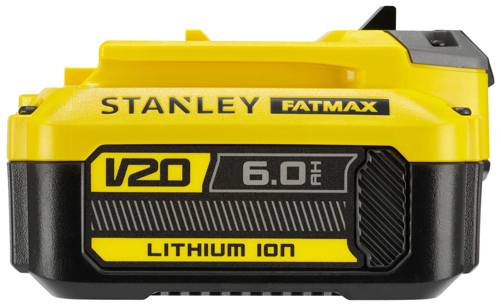 Nowoczesny akumulator akumulator Stanley Fatmax V20 w technologii Litowo - jonowej o pojemności 6,0Ah do wszystkich elektronarzędzi Stanley Fatmax o napięciu zasilania 18V.