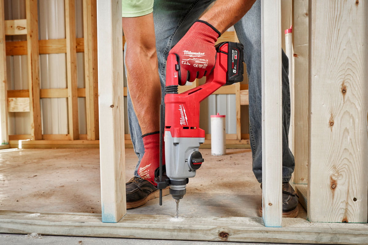 Milwaukee M18FHX-802X to akumulatorowa młotowiertarka SDS-Plus 18 V o energii udaru 2,5 J. W zestawie 2 akumulatory FORGE 8,0 Ah, ładowarka i walizka do pracy w terenie.