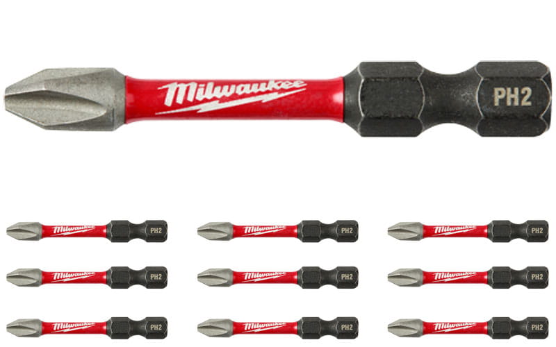 Końcówka wkrętakowa - bit PH2 50mm 1/4" komplet 10 sztuk Shockwave Milwaukee.