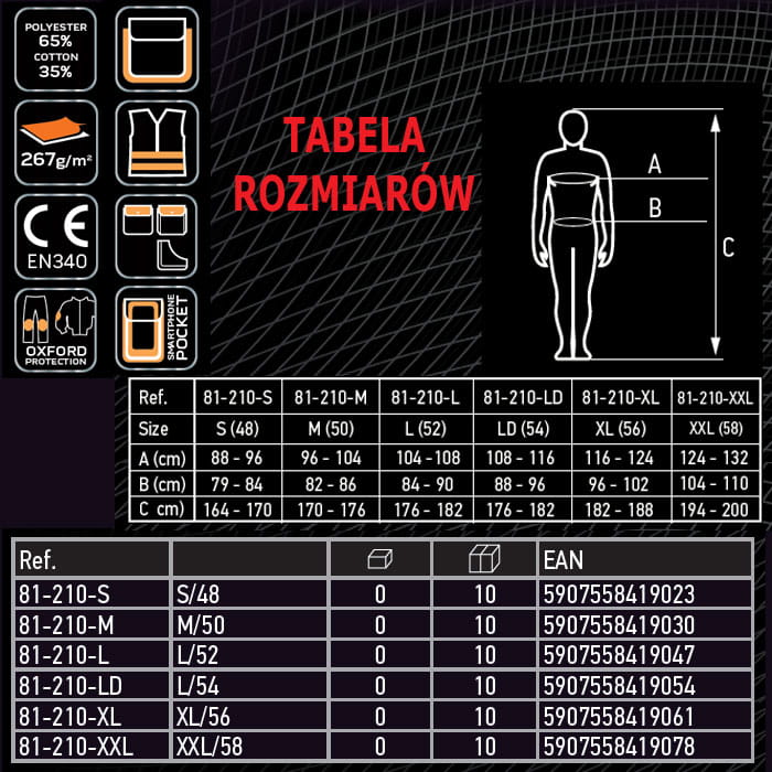 - liczne kieszenie zapinana na rzepy w tym: kieszeń na telefon, wzmocnione kieszenie na materiały np. wkręty, nity itd.