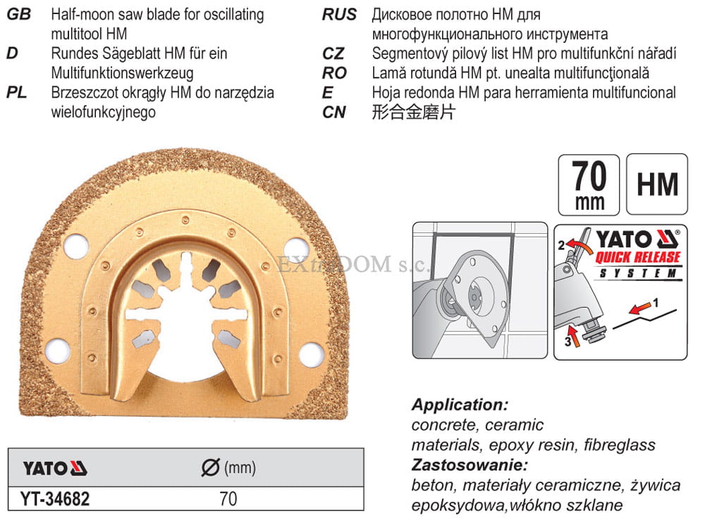 Zarówno wielofunkcyjne narzędzia oscylacyjne i akcesoria z serii Yato Quick Release System pozwalają na szybką, beznarzędziową wymianę akcesoriów, co znacznie ułatwia i przyspiesza pracę. Akcesoria Yato Quick Release System najlepiej współpracują z kompatybilnymi urządzeniami Yato, szczególnie z modelem YT-82220.