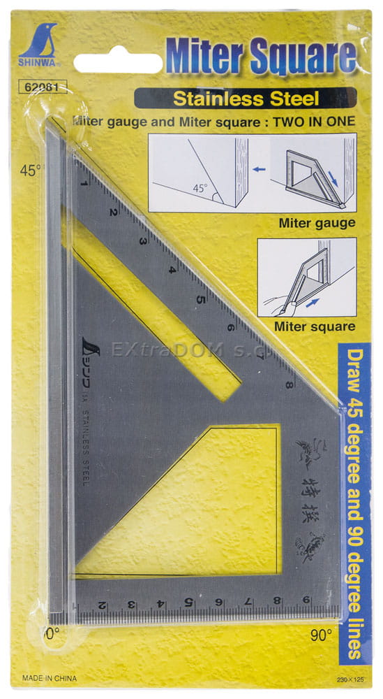 Precyzyjny kątownik 45/90º w standardowym wykonaniu. Wykonany ze stali nierdzewnej przez japońską firmę Shinwa.