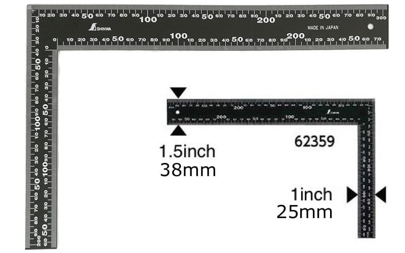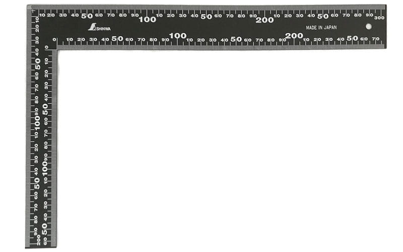 Kątownik pomiarowy 300 x 200 mm marki Shinwa 62359. Kątownik posiada 8 skali na obydwu ramionach. Do trasowania pod kątem 90 stopni, pomiarów długości, wyznaczania odległości od krawędzi. Wyprodukowany w Japonii.