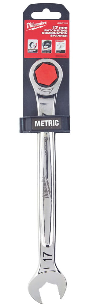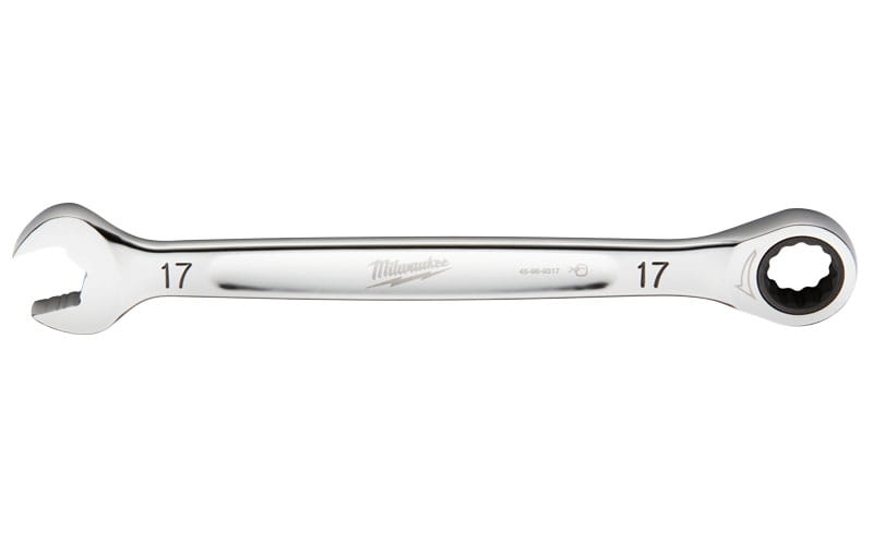 Klucz płasko - oczkowy z grzechotką Milwaukee 17 mm. Profesjonalne narzędzia z chromowaną powłoką skutecznie chroniącą przed rdzą.