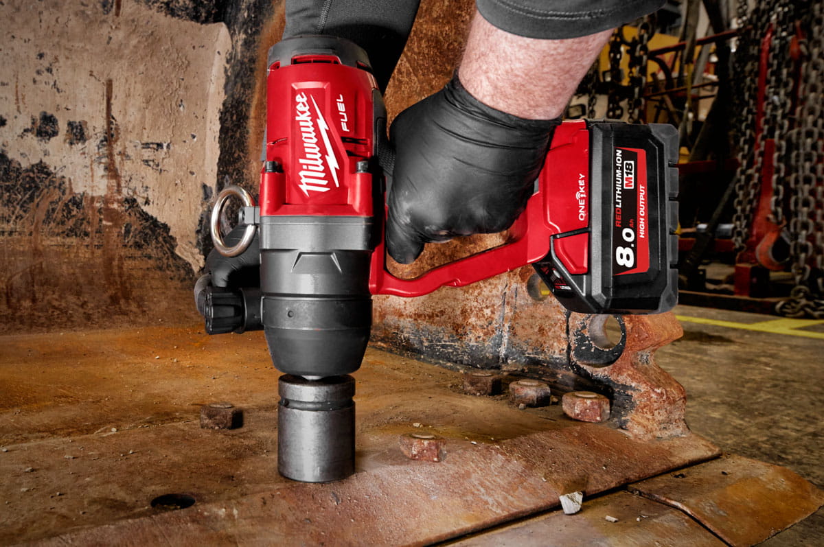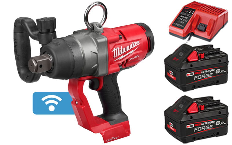 Ekstremalnie mocny klucz udarowy Milwaukee 1" 2033Nm 18V, Wersja ONE-KEY™ z dwoma akumulatorami FORGE™ 8,0 Ah oraz szybką ładowarką w systemowej walizce HD Box.