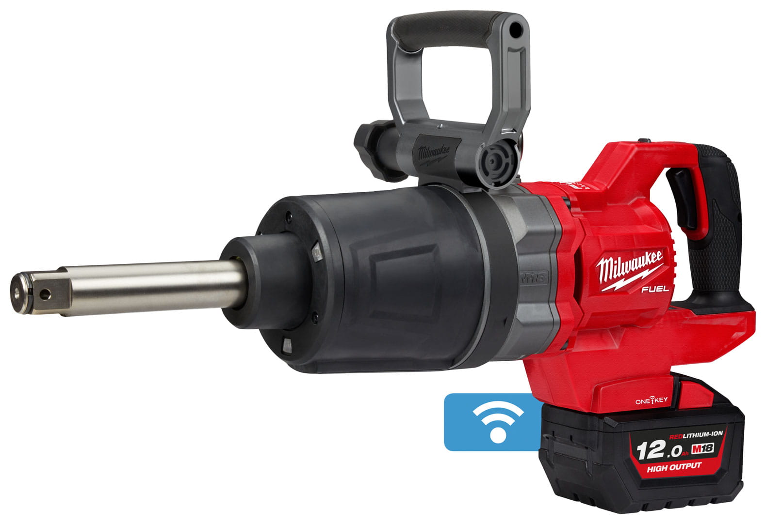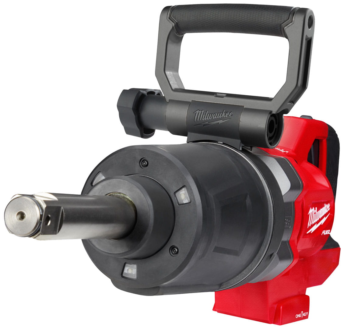 - M18 FUEL™ ONE-KEY™ Klucz udarowy 1″ z rękojeścią D, długim wrzecionem i pierścieniem zapewnia maksymalny moment obrotowy o wartości 2 576 Nm zastępując klucze przewodowe, pneumatyczne oraz napędzane silnikiem benzynowym.