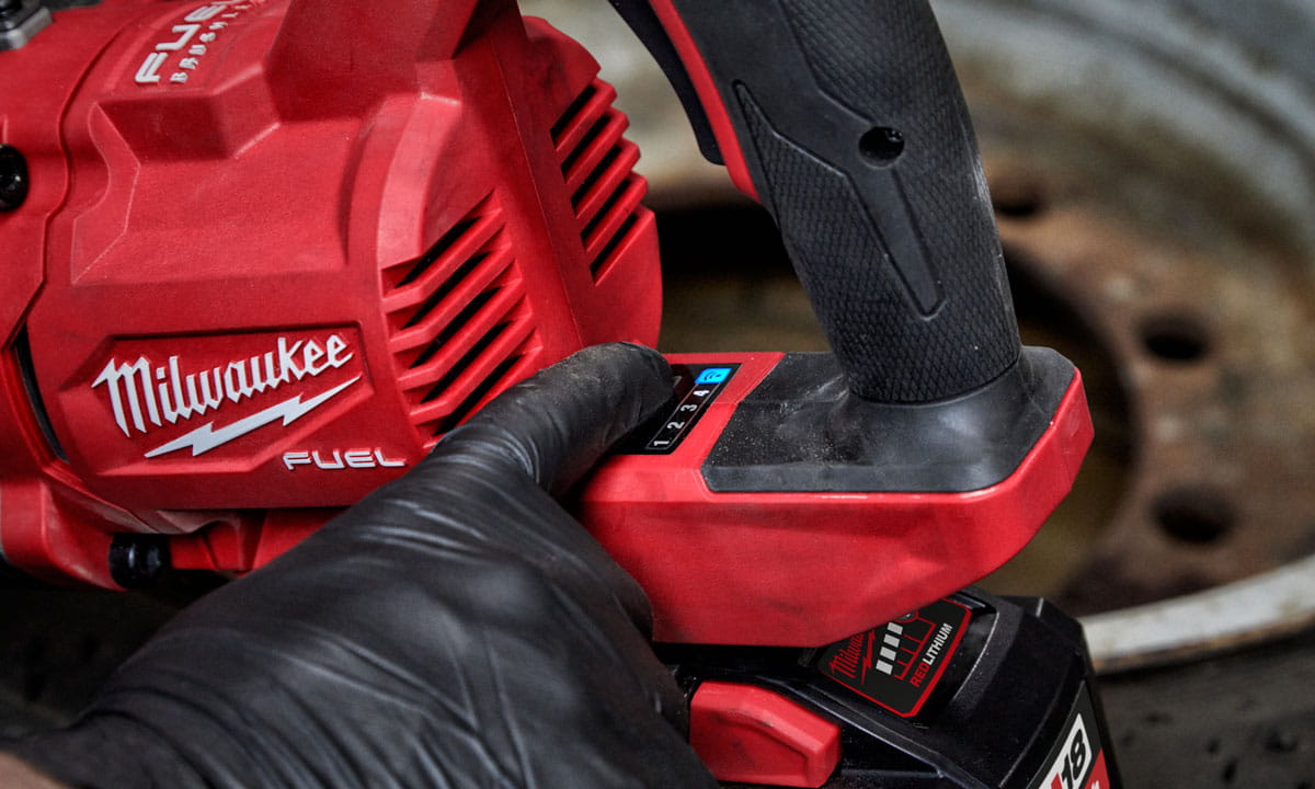 - Po włączeniu poprzez ONE-KEY™ trybu do pracy przy nakrętkach mocujących, następuje automatyczne wyłączenie narzędzie, gdy osiągnie wartości momentu obrotowego z zakresu 475 Nm - 610 Nm, co zapobiega nadmiernemu dokręceniu nakrętek mocujących.