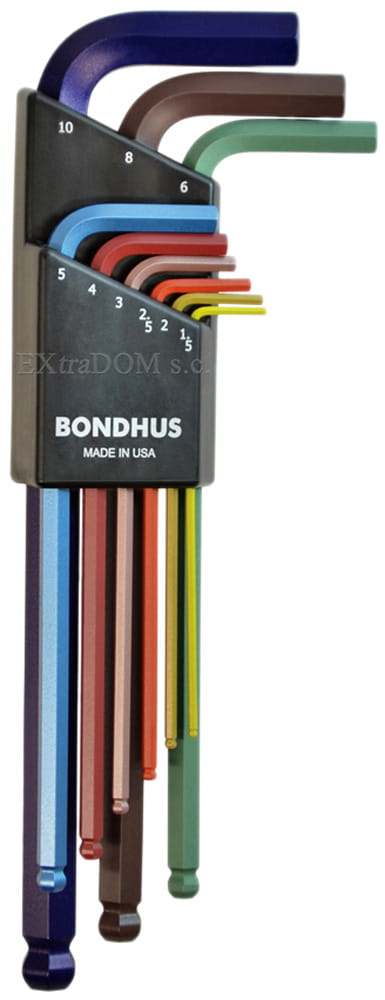 Najwyższej klasy, profesjonalny komplet kluczy imbusowych z kulką, wyprodukowany w USA przez firmę Bondhus – światowego lidera w produkcji kluczy imbusowych. ColorGuard - każdy klucz w innym kolorze.
