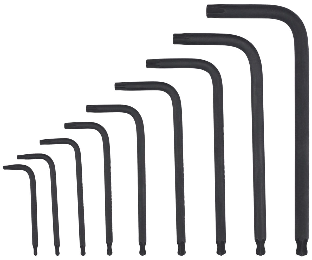 - W zestawie klucze: T8, T9, T10, T15, T20, T25, T27, T30, T40.
