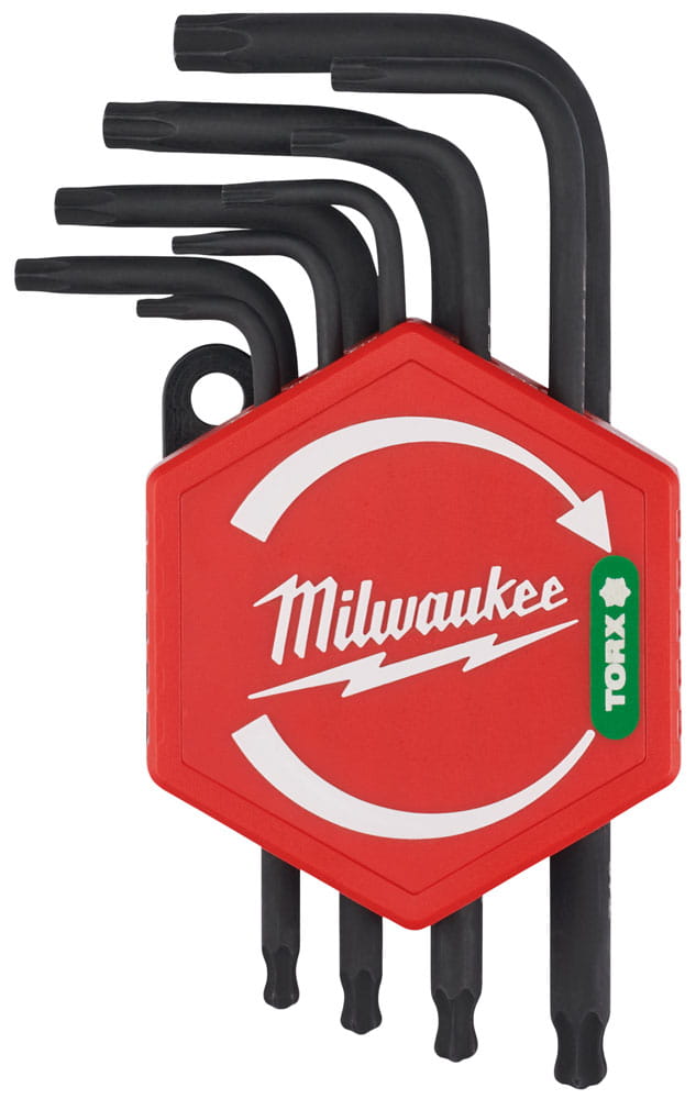 Klucze imbusowe Compakt z końcówkami TORX sześciokątne firmy Milwaukee zestaw 9 częściowy. Tradycyjne klucze w kształcie litery "L", które są wygodne do przenoszenia i użycia w ciasnych przestrzeniach.