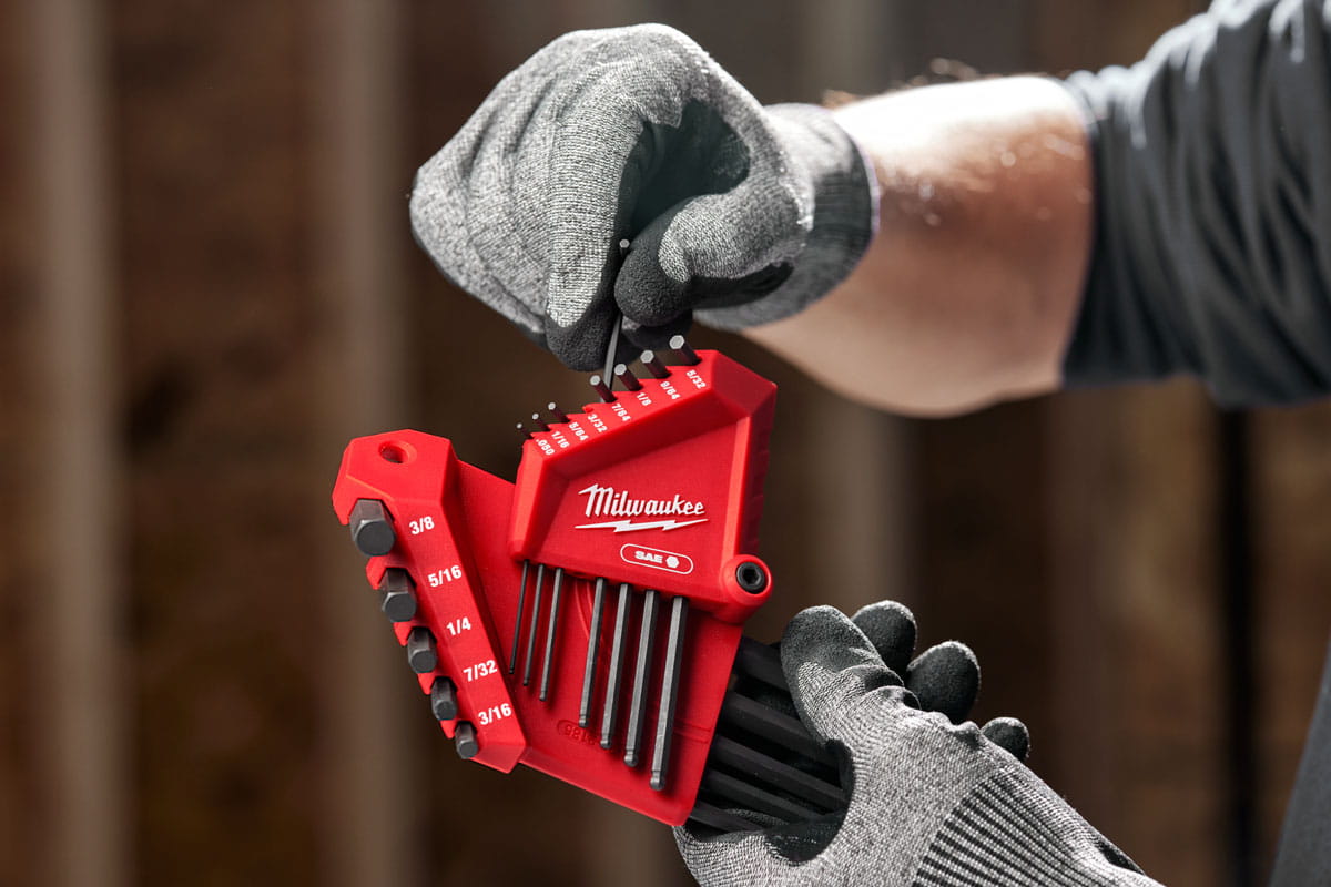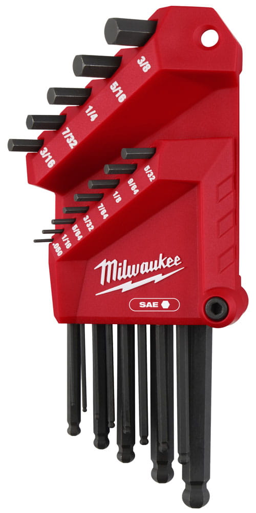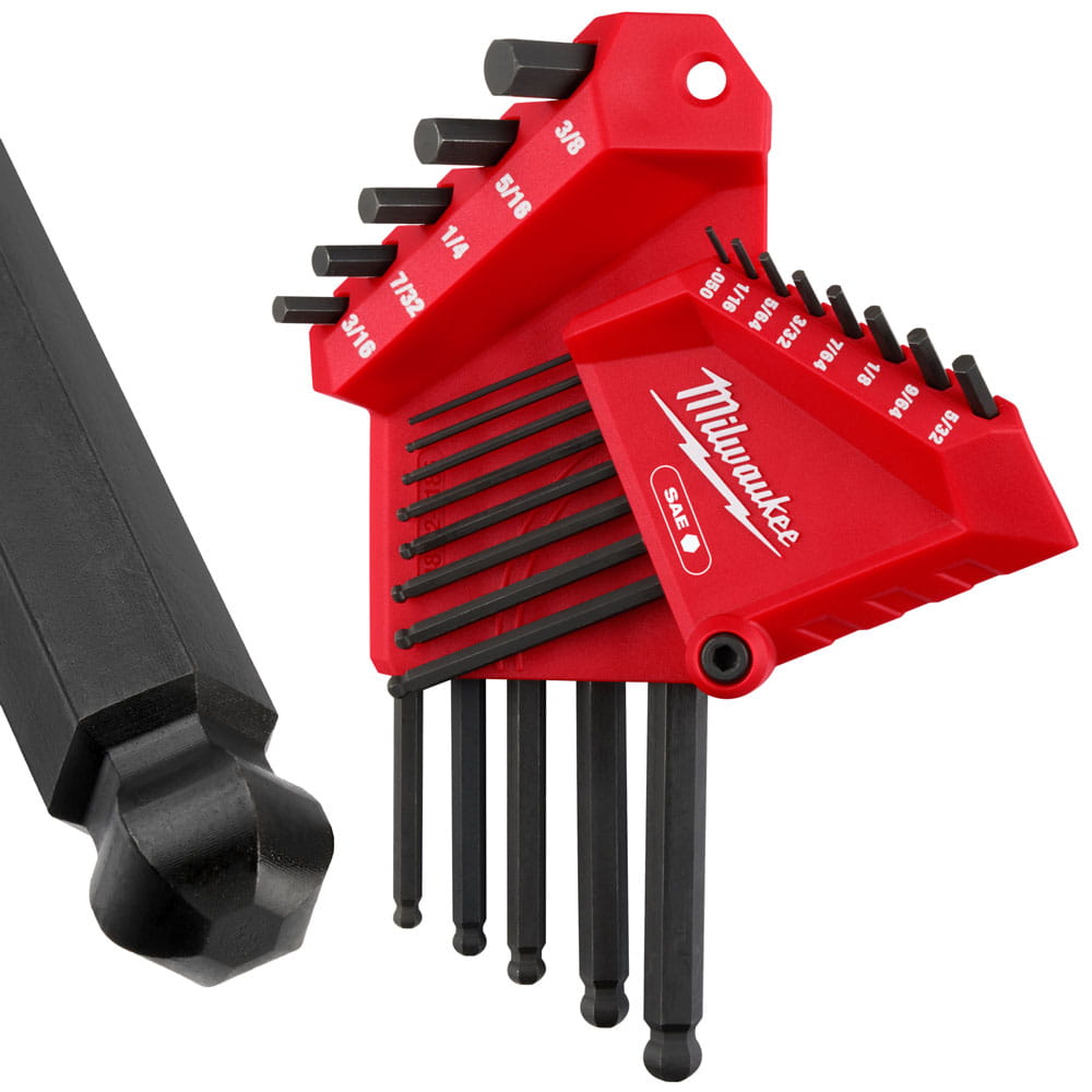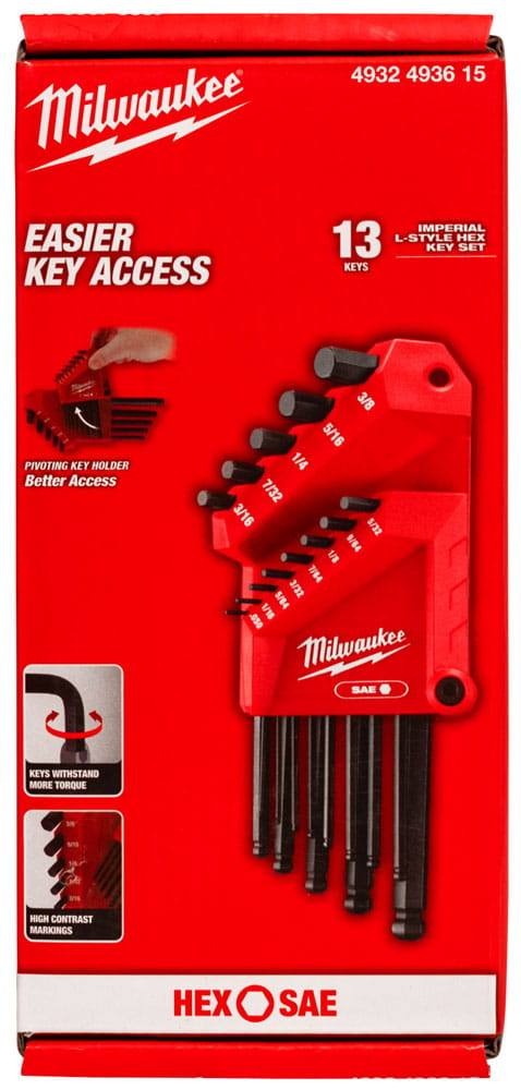 Klucze imbusowe sześciokątne calowe firmy Milwaukee zestaw 13 częściowy. Tradycyjne klucze w kształcie litery "L", które są wygodne do przenoszenia i użycia w ciasnych przestrzeniach.