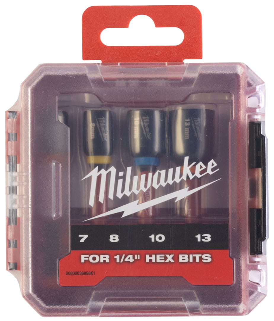 - Klucze nasadowe 1/4” Milwaukee – zestaw 4 sztuki: 7 - 8 - 10 - 13 mm