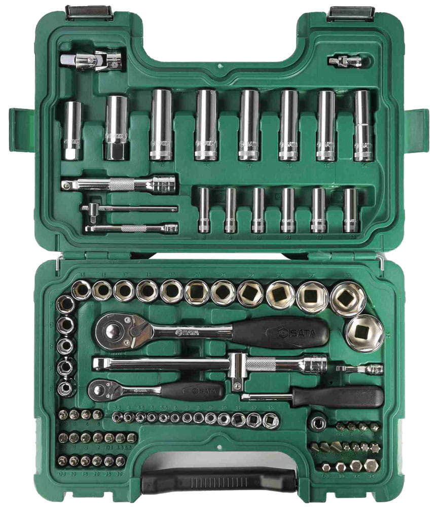 Klucze nasadowe SATA zestaw 86 części w walizce 3,5 - 32mm. Zestaw najczęściej używanych kluczy i bitów w standardzie napędu 1/4” oraz 1/2”. Polecany do profesjonalnego użytku w serwisie mechanicznym.