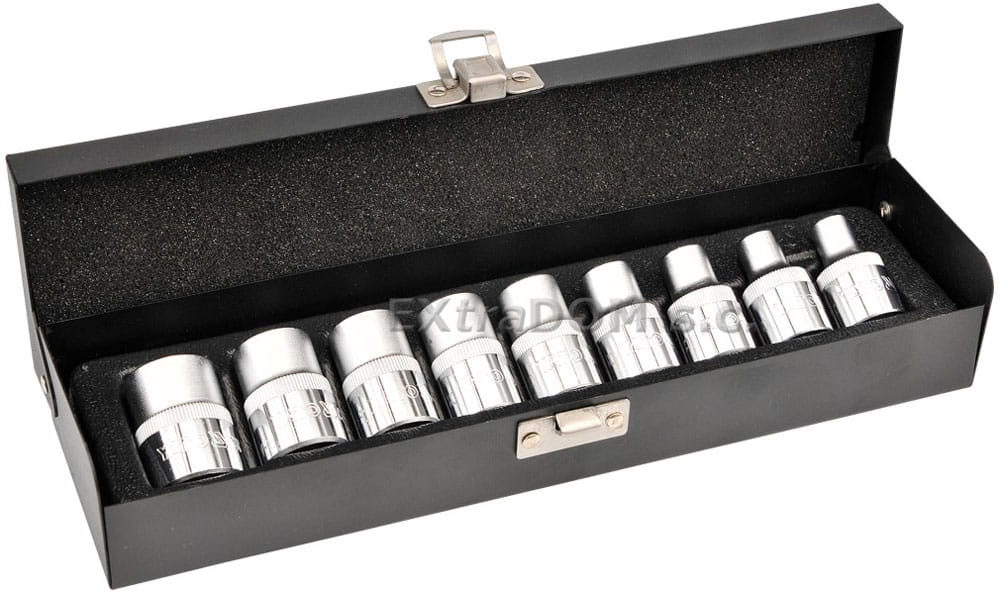 Nasadki wykonane sa ze stali chromowo wanadowej CrV 6150, która gwarantuje ich wytrzymałość i długą żywotność.