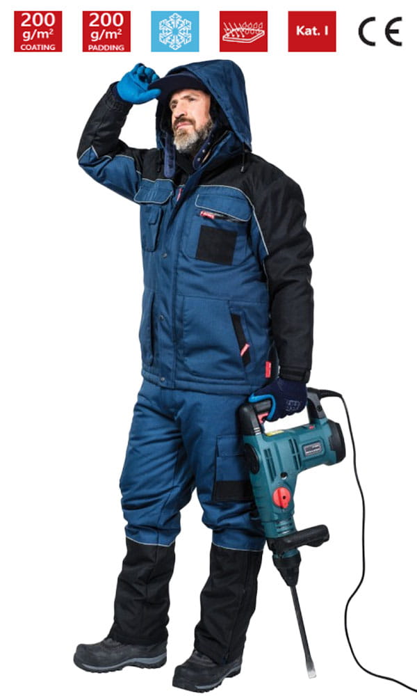 Kurtka robocza zimowa z marki Lahti Pro, niebieska z elementami odblaskowymi. Wysokiej jakości odzież robocza na chłodne zimowe dni.