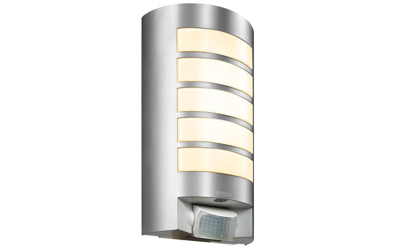 Energooszczędna lampa z czujnikiem ruchu do montażu na ścianie L 12 marki Steinel o nowoczesnej aluminiowej oprawie.