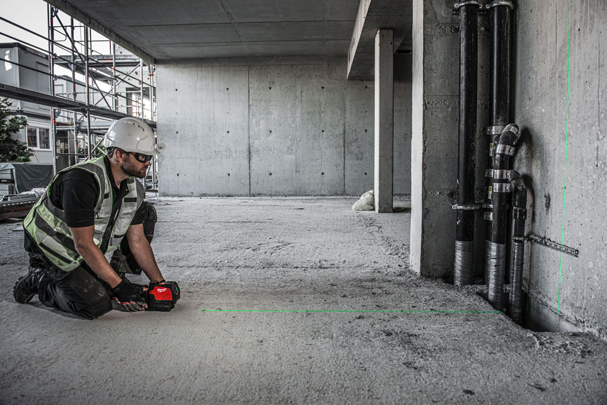Zielony laser krzyżowy Milwaukee M12CLLP-0C to laser liniowo-punktowy z zieloną wiązką. Urządzenie wyposażone we wszystkie potrzebne funkcje, umożliwiające ustawienie linii lasera w poziomie, w pionie, a także ustawienie punktów wyznaczających pion na podłożu i na stropie.