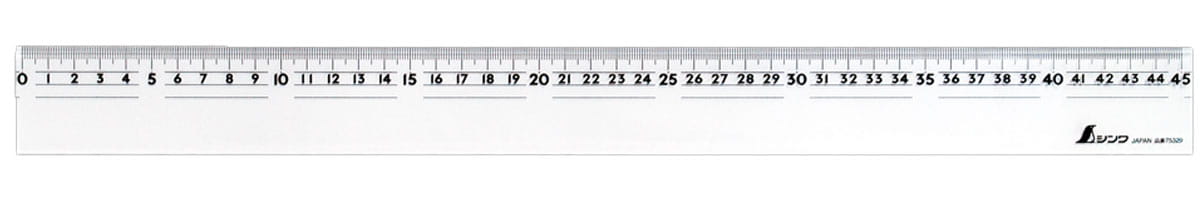 Liniał przeźroczysty z podziałką długości 45 cm marki Shinwa. Wykonany z wysokoprzezroczystej żywicy akrylowej.