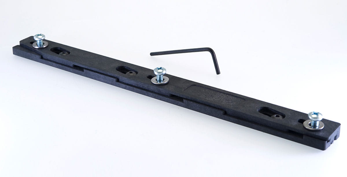 Listwa regulowana pojedyncza do rowka 19mm Microjig Zero Play (ZP9-B1). Listwa służy do montażu w blatach maszyn stolarskich ze standardowym rowkiem o szerokości 19mm lub profilu aluminiowym o tej szerokości.