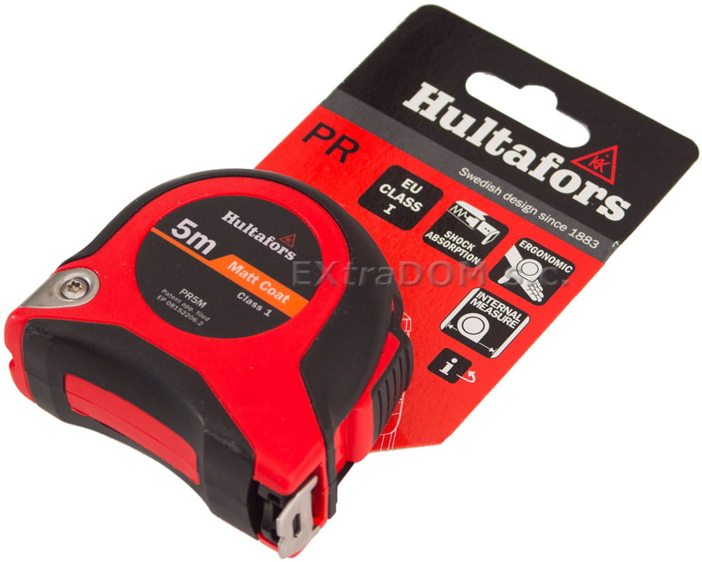 Profesjonalna miara zwijana długości 5m firmy Hultafors. Taśma ze stali, wykonana w pierwszej klasie dokładności.