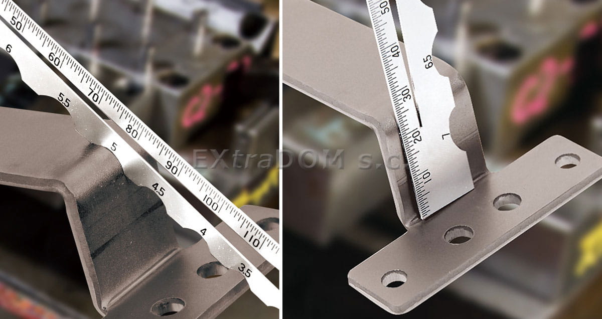 - Przymiar liniowy z pomiarem głębokości do 150 mm.