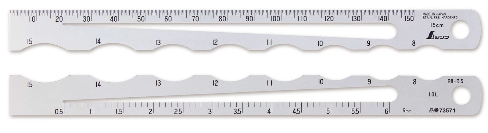 Miernik promienia i średnicy w zakresie 8 - 15 mm, wykonany ze stali nierdzewnej Shinwa 73571. Do pomiaru promienia, średnicy zewnętrznej, długości i głębokości.