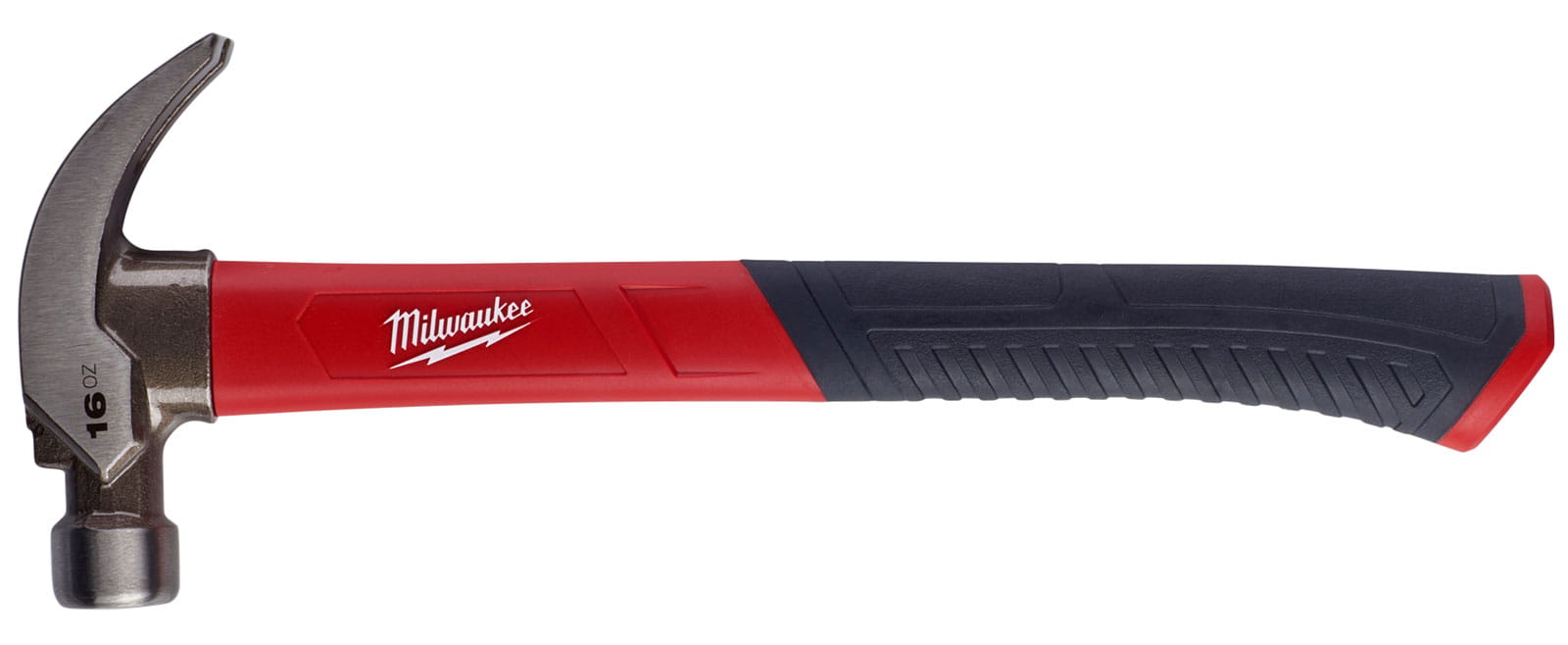 Młotek ciesielski z trzonkiem z włókna Milwaukee pazur zakrzywiony, waga 450 g / 16 uncji.