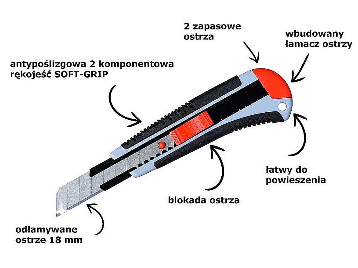 - na odłamywane ostrze o szerokości 18 mm, można też zastosować ostrza bez segmentów,