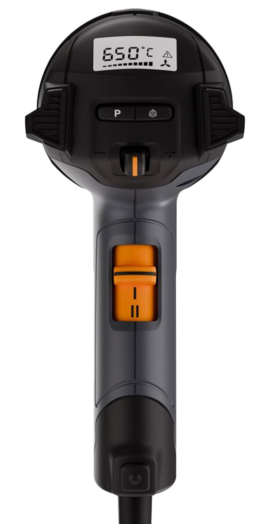 - Precyzyjna regulacja: płynne ustawianie temperatury i wydatku powietrza pozwala na dopasowanie do różnych materiałów i zadań, co zwiększa bezpieczeństwo i efektywność. 4 zaprogramowane fabrycznie ustawienia (możliwość zmiany ustawień przyciskiem zapisywania w pamięci).