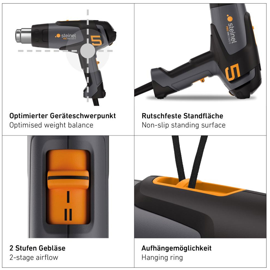 Opalarka Steinel HM2320 E ECO to niezawodne narzędzie do prac wykończeniowych i remontowych. Precyzyjne i efektywne ogrzewanie w każdym miejscu. Opalarka Steinel HM2320 E ECO to profesjonalne narzędzie o mocy 2300W, które wyróżnia się płynną regulacją temperatury i wydatku powietrza.