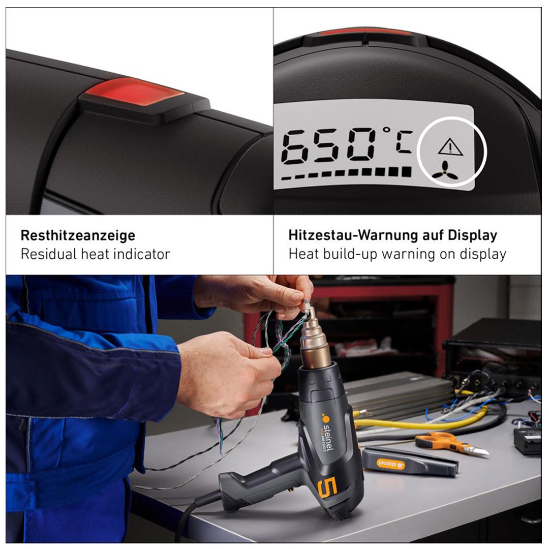 Opalarka Steinel HM2320 E ECO profesjonalna, 2300W płynna regulacja temperatury i wydatku powietrza, wyświetlacz LCD