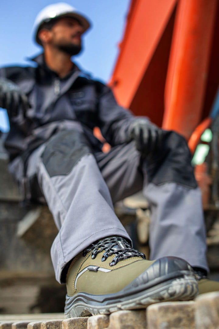 - Wysokiej jakości materiały: obuwie wykonane z naturalnej skóry nubukowej, co gwarantuje trwałość i komfort użytkowania, nawet w trudnych warunkach. Stalowa wkładka antyprzebiciowa, oraz stalowy podnosek zapewniają bezpieczeństwo podczas pracy.
