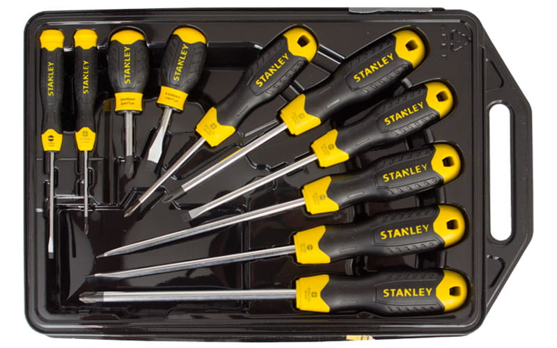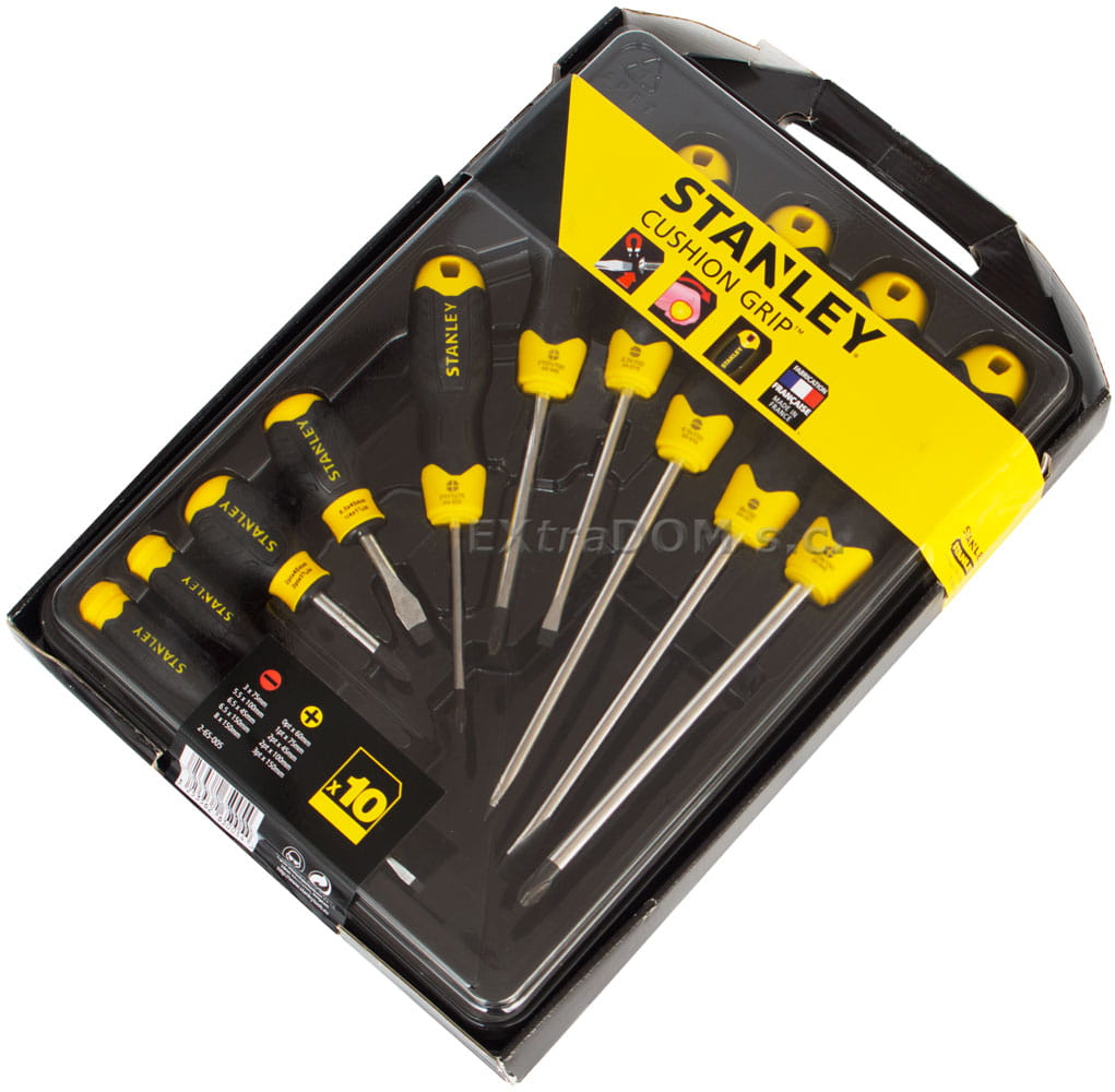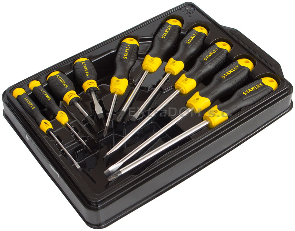 3. Profesjonalne wkrętaki Cushion Grip Stanley krzyżowe i płaskie komplet 10 sztuk w walizce.