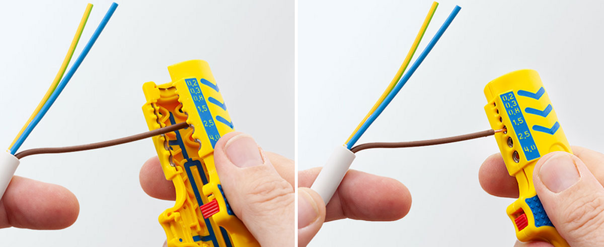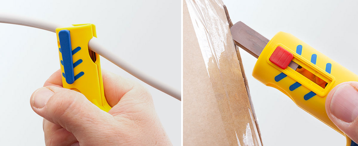- Przeznaczony do ściągania płaszczy z wszystkich dostępnych w handlu kabli o przekroju okrągłym w zakresie średnicy Ø 8-13 mm, np. NYM 3x1,5 do 5x 2,5 mm2.