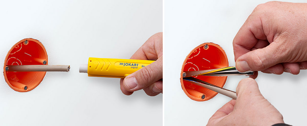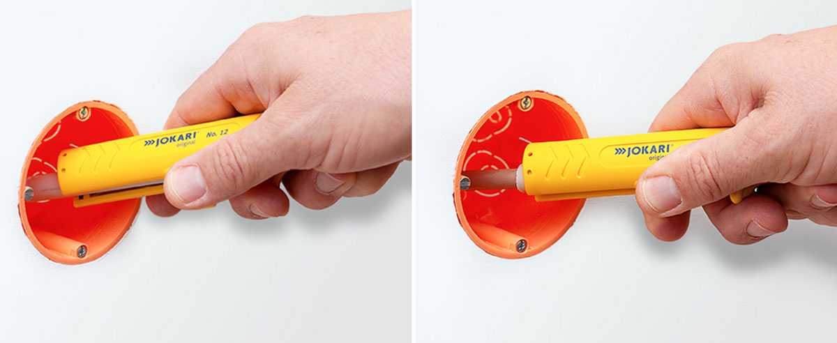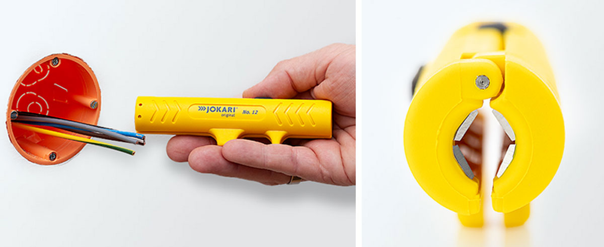Przyrząd do ściągania izolacji Jokari 30120. Innowacyjne narzędzie niemieckiego producenta Jokari, zaprojektowane do precyzyjnego usuwania izolacji z okrągłych przewodów, zapewniając szybkie i bezpieczne wykonanie prac.