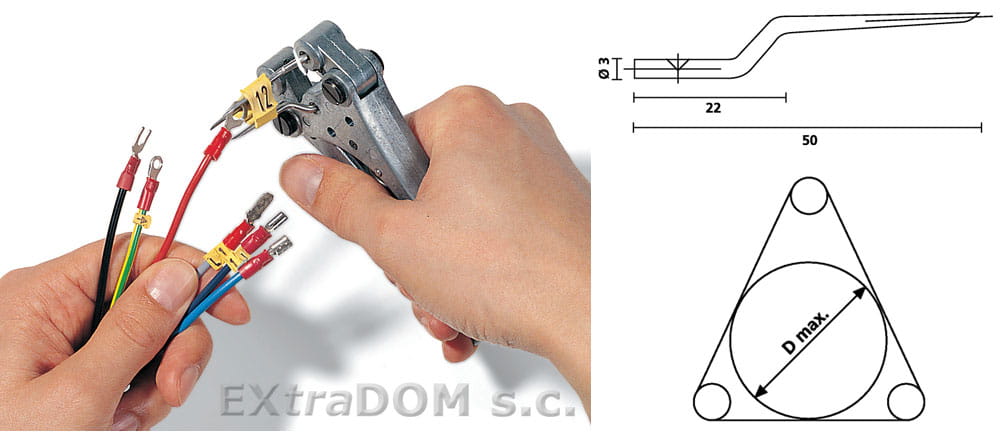 - Do szybkiego nakładania rozciągliwych tulejek wszystkich typów na złącza i kable. Za pomocą trzech precyzyjnych zębów rozciągają tulejkę elastyczną umożliwiając jej osadzenie.