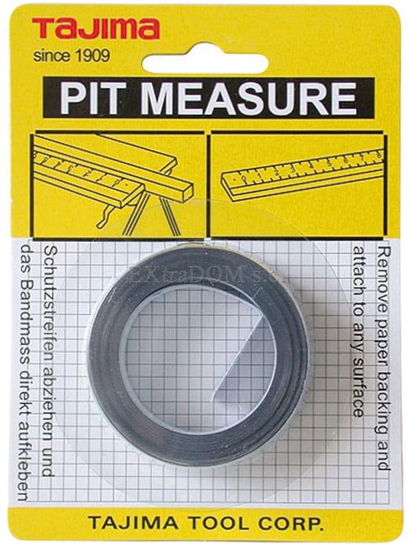 Profesjonalna, samoprzylepna taśma miernicza japońskiej firmy Tajima PIT-20/13. Taśma do przyklejania na stałe na stołach montażowych i warsztatowych, w sklepach do odmierzania towaru „na metry” itp. Oferta hurtowa, cena dotyczy 10 sztuk.