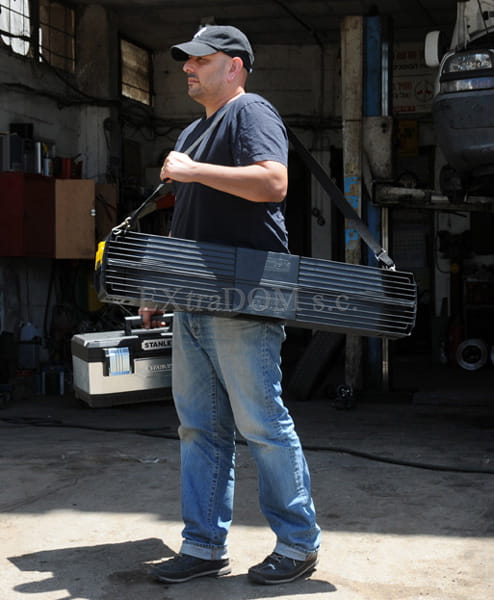 - komfortowa rękojeść i pasek ułatwiają przenoszenie stojaka w inne miejsce robocze,