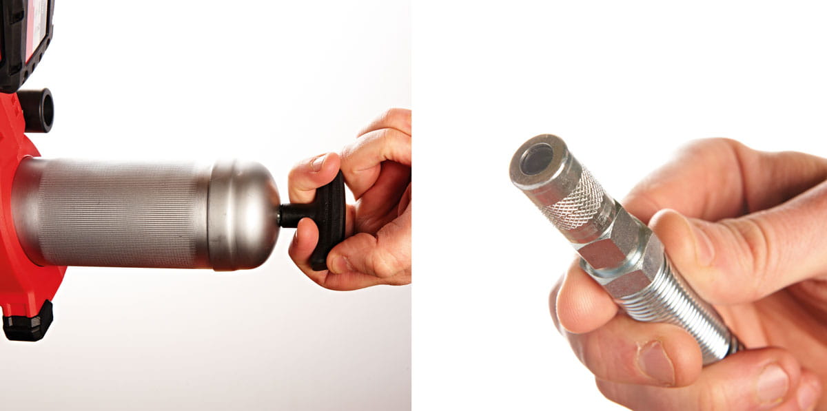 - Trzy możliwości załadunku - ″kiełbasa″, nabój, możliwość wysysania. Kartusz do smaru o pojemności 400 ml, smar 473 ml.