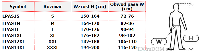- obwód pasa: 72 - 76 cm.