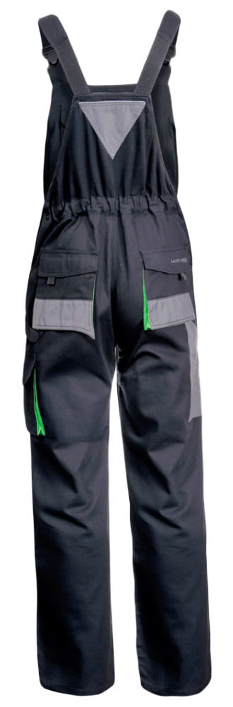Spodnie ogrodniczki robocze marki Lahti Pro, czarno - zielone, wykonane w 100% z bawełny. Wysokiej jakości odzież ochronna przeznaczona dla wymagających użytkowników.