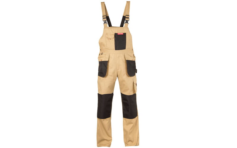 Spodnie ogrodniczki robocze marki Lahti Pro, beżowe, wykonane w 100% z bawełny. Wysokiej jakości odzież ochronna przeznaczona dla wymagających użytkowników.