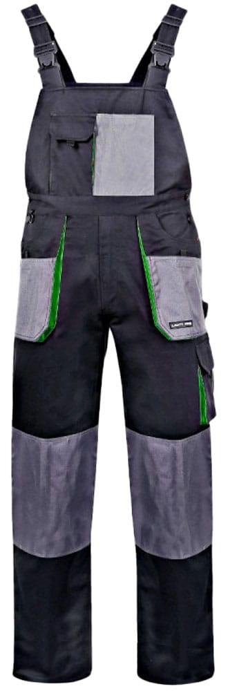Spodnie ogrodniczki robocze marki Lahti Pro, czarno - zielone, wykonane w 100% z bawełny. Wysokiej jakości odzież ochronna przeznaczona dla wymagających użytkowników.