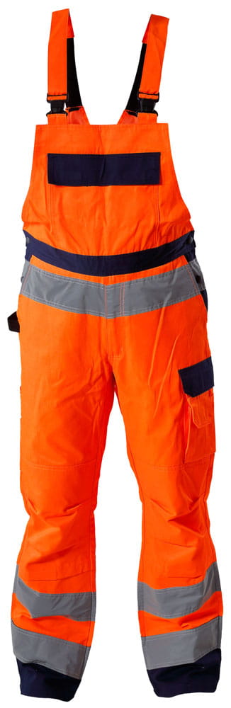 Spodnie ostrzegawcze robocze typu ogrodniczki PREMIUM marki Lahti Pro, pomarańczowe. Wysokiej jakości odzież ostrzegawcza w najwyższej klasie widzialności (klasa 3) przeznaczona dla wymagających użytkowników.