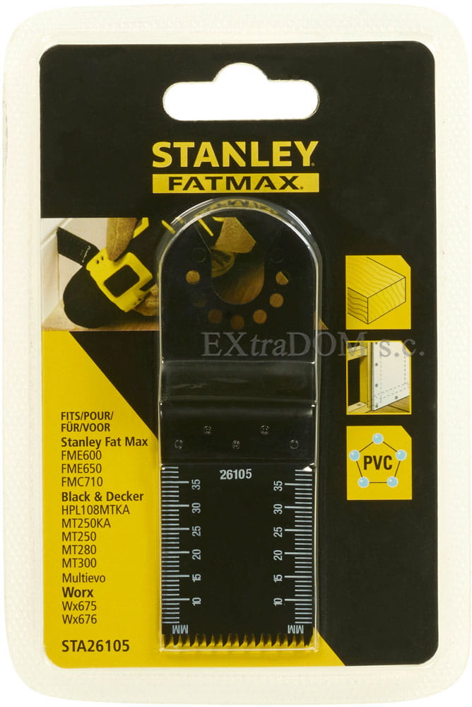 Precyzyjny brzeszczot firmy Stanley z uniwersalnym uchwytem pasującym do urządzeń wielofunkcyjnych Stanley, Black & Decker oraz DeWalt.