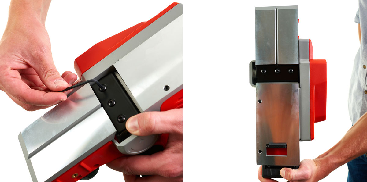 - Wysuwana stopka przednia pozwala szybko i precyzyjnie umieścić narzędzie na obrabianym elemencie.