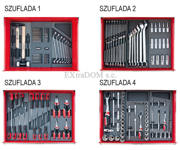 Wyposażona w wygodne szuflady, stabilne półki oraz ergonomiczne uchwyty, co pozwala na szybki i komfortowy dostęp do każdego elementu. Idealna do warsztatów samochodowych, przemysłowych i domowych, gdzie liczy się organizacja i niezawodność sprzętu.