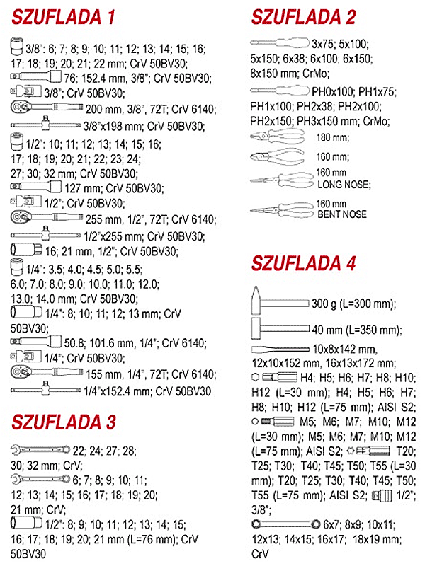 - Pojemność narzędzi: 177 sztuk.