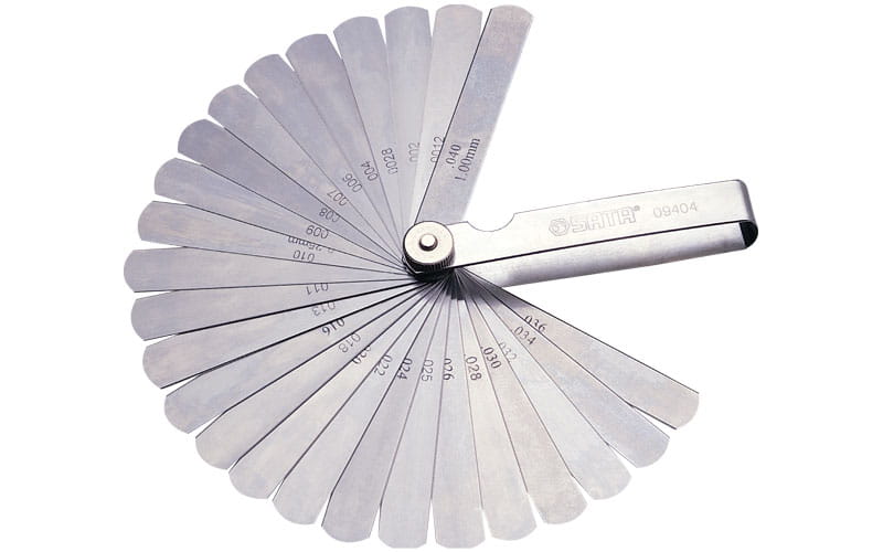 - rozmiary listków mierniczych: 0,02 - 0,03 - 0,04 - 0,05 - 0,06 - 0,07 - 0,08 - 0,09 - 0,10 - 0,13 - 0,15 - 0,18 - 0,20 - 0,23 - 0,25 - 0,28 - 0,30 - 0,33 - 0,38 - 0,40 - 0,45 - 0,50 - 0,55 - 0,60 - 0,63 - 0,65 - 0,70 - 0,75 - 0,80 -0,85 - 0,90 - 1,00mm.